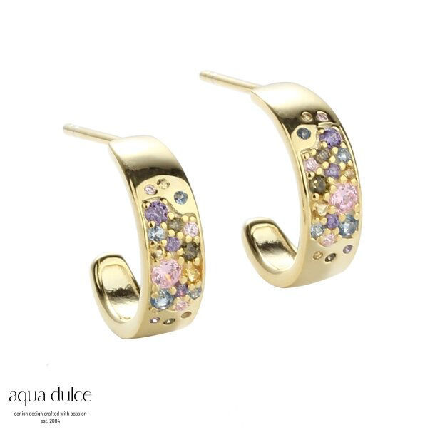 Creoler 15 mm. i forgyldt sterling sølv med pastelfarvet zirkonia