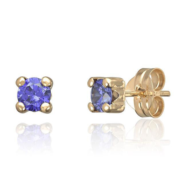 Øredobber i gult gull 14 kt med blå/lilla zirkon - 47592
