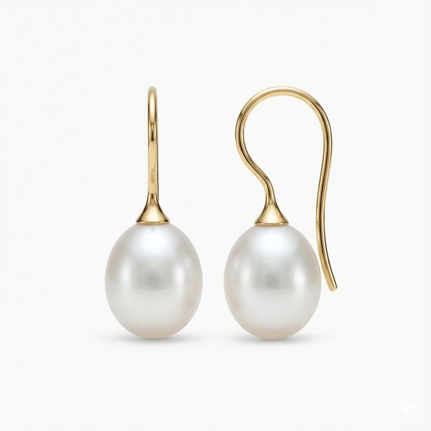 Øredobber i gult gull 14kt med ferskvannperler - Bur711257