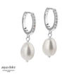 13 mm. klik creoler i sterling sølv med klare zirkonia & 10 mm. ferskvandsperle vedhæng.