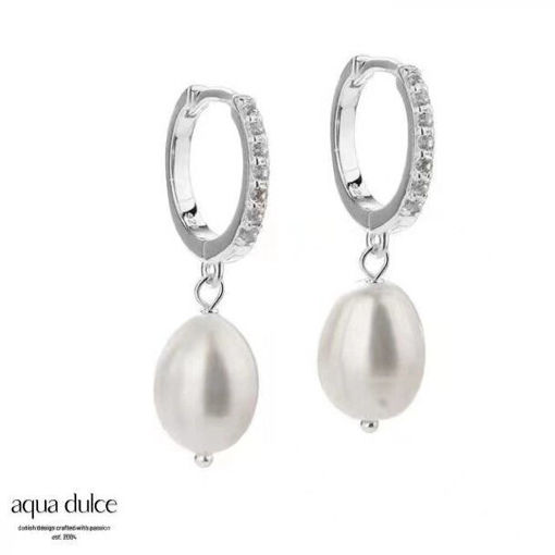 13 mm. klik creoler i 925 sterling sølv med klare zirkonia & 10 mm. ferskvandsperle vedhæng.