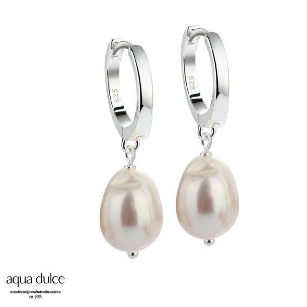 13 mm. blanke klik creoler i sterling sølv med 10 mm. ferskvandsperlevedhæng.