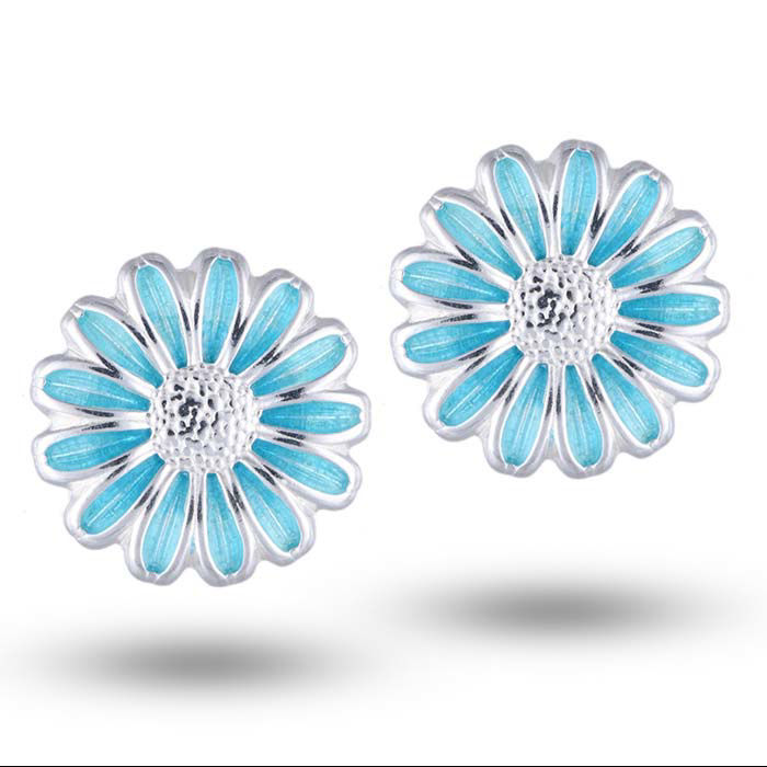 Margeritt ørestikk i turkis glassemalje. Bredde 11 mm. Smykkene er i sølv 925.