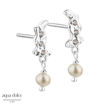 Ørestikker i sterling sølv med lille ruflet vedhæng med 3 klare zirkonia og 4 mm. ferskvandsperler.