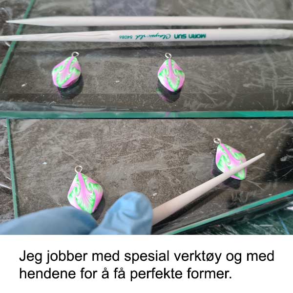 Disse smykkene er håndlaget i Norge av kunstige materialer med bruk av denne metoden.