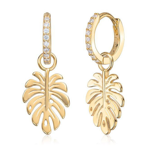 Øreringer "Monstera" Cz i sølv forgylt. *Metall: 925 Sølv *Overflate: Forgylling *Bredde: 10 mm *Høyde: 26,00 mm *Stener: Zirkonia