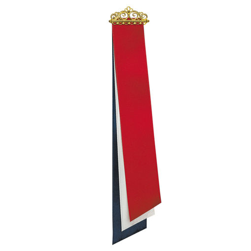 17. mai sløyfe med krunemotiv i oksidert sølv og 28 cm lange sløyfeband i raudt, kvitt og blått. Den kan brukast igjen, år etter år, og er ei fin gåve til store og små.