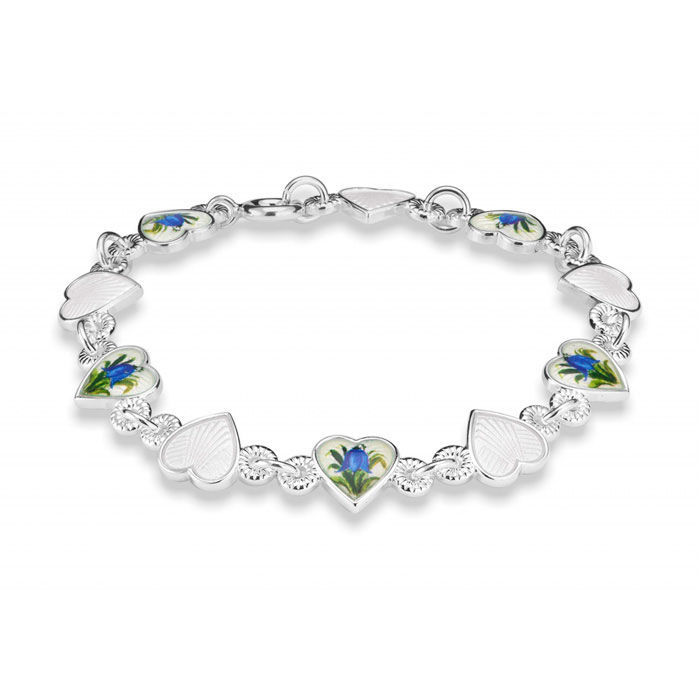 Armbånd Blåklokker/hvite hjerter i sølv - 220206
