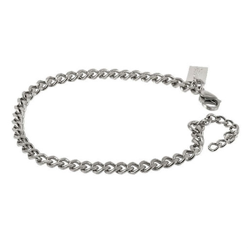 Armbånd i stål, bredde 5mm, lengde 19cm og forlengelseslenke 4 cm.