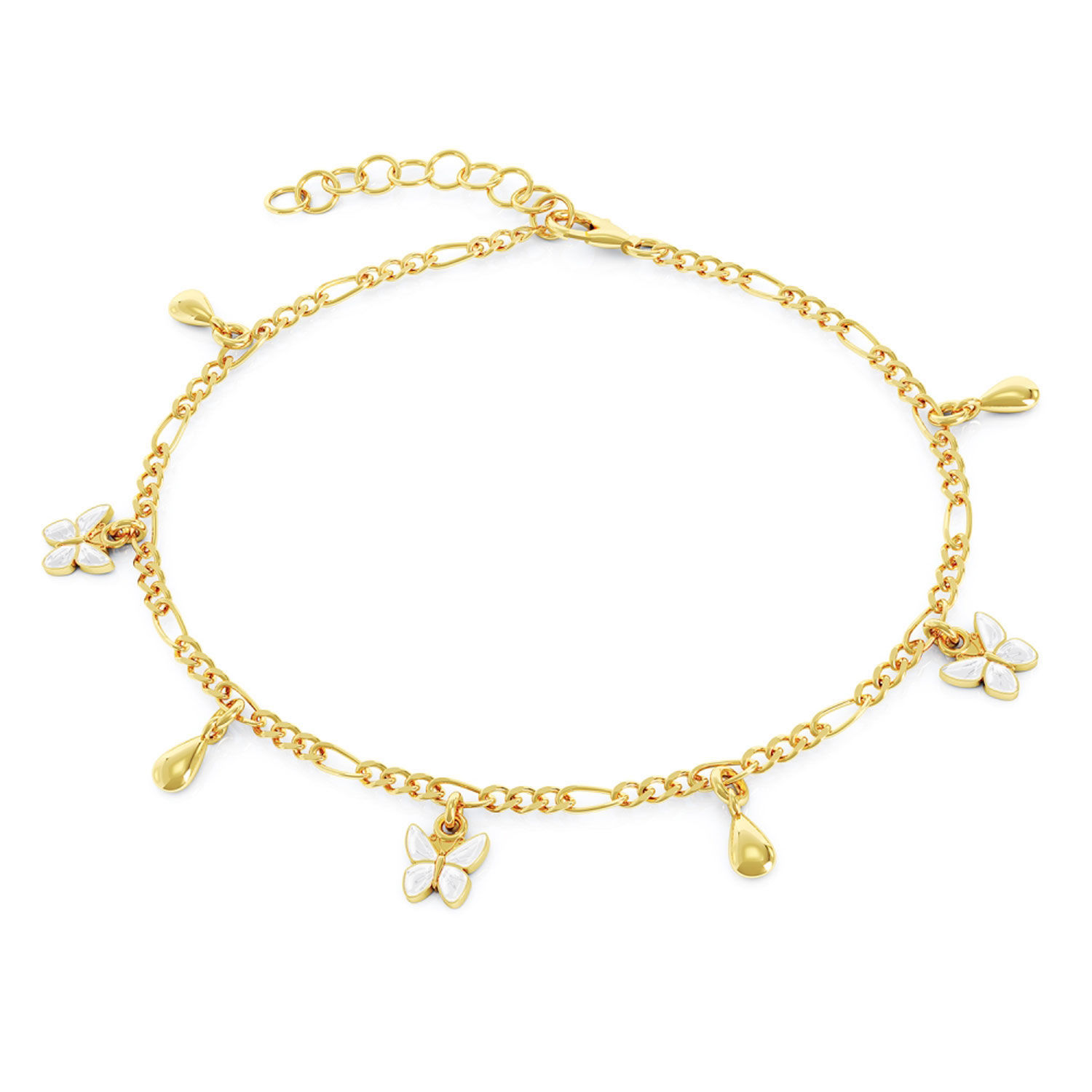 Armbånd Figaro i forgylt sølv med hvite sommerfugler og dråper - 751803