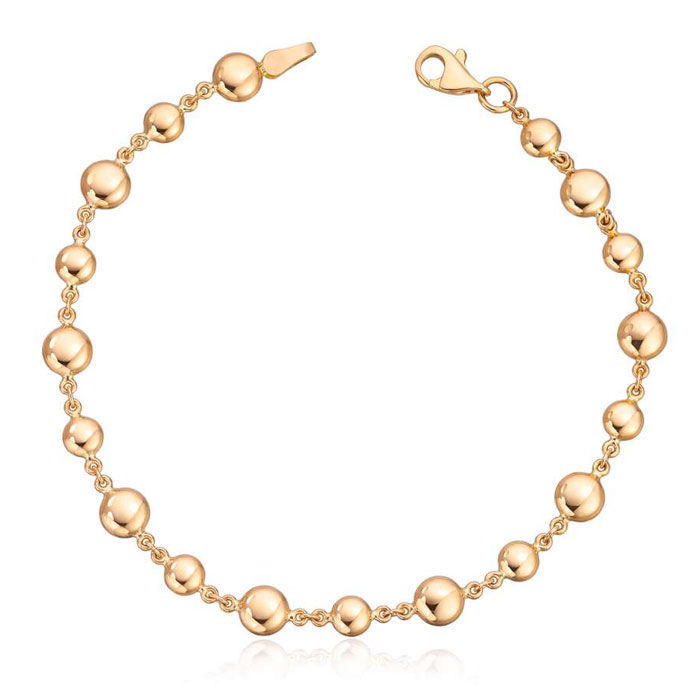 Armbånd med flate kuler i gult gull 14kt, 19 cm - 16998