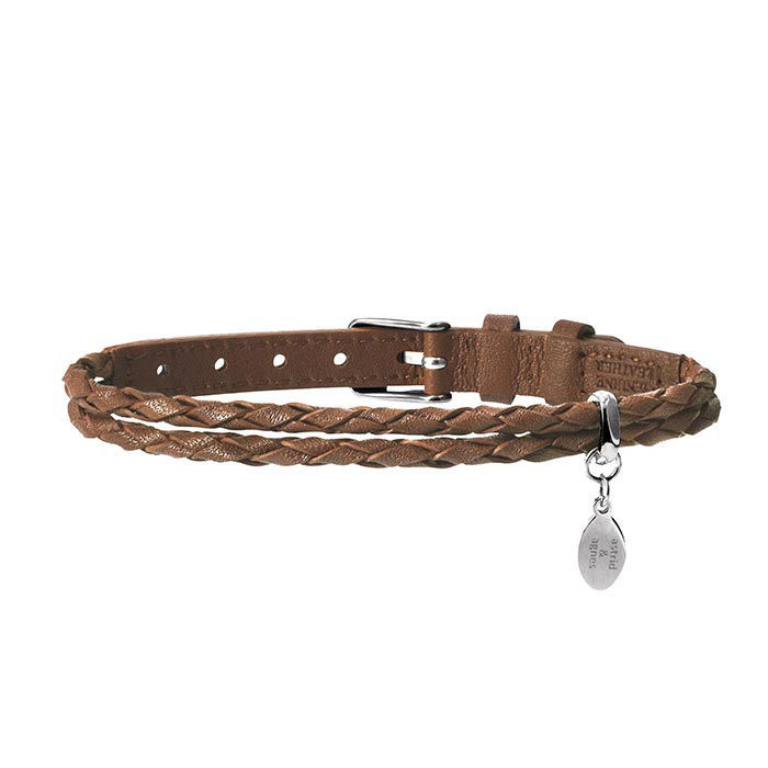 Smalt Brunt armband av dubbla flätade läderband med logga som ståldetalj.Bredd: 8 mmLängd: Justerbart från 16 - 21 cmFärg: Brunt/StålMaterial: Läder + Stål