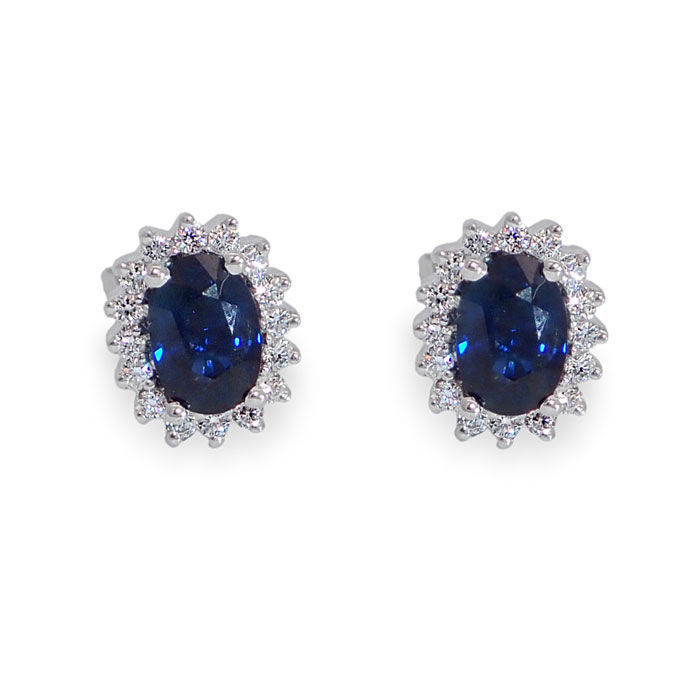 Diamantøredobber i hvitt gull 14 karat med safir og diamanter 0,21 ct. TW-Si. Størrelse 6 x 4 mm.