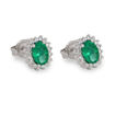 Diamantøredobber i hvitt gull 14 kt/585 med smaragd og diamanter 0,21 ct TW-Si til sammen. Størrelse 6 mm x 4 mm. De elegante diamantøredobbene med rosettmotiv er prydet med forlokkende smaragder og omringet av skinnende diamanter. Disse blendende diamantøredobbene inneholder smaragd og diamanter av høy kvalitet, som vil bevare sin glans og sjarm i mange år framover. Anheng i hvitt gull 14 kt/585 med  smaragd 6x4 mm og diamanter 0,12 ct TW-Si til sammen. Uten kjede. Se utvalget av kjeder nedenfor.