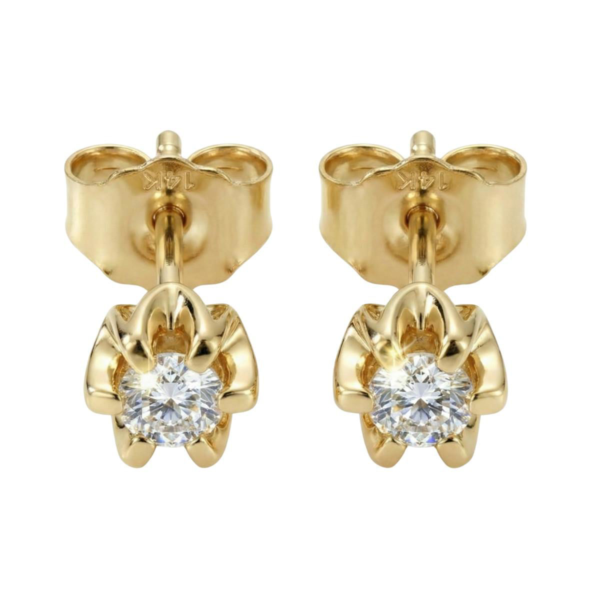 Totalt carat for begge ørepynt 2/0,16 ct. Denne høykvalitets produsenten i Hongkong har vært en partner av oss i over 20 år. Alle produktene holder høyeste kvalitet. Ørepyntene har meget god kvalitet og stopperen (bak øret) er av vesentlig bedre kvalitet enn hva som er vanlig. Diamantene er håndplukket og alltid i W-Si1. Klør rundt diamanten er robuste og ligger nøyaktig inn mot diamanten i en form som er optimal for å fremheve diamanten.
