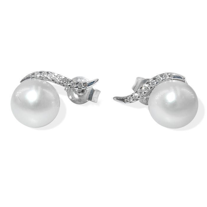 Ørepynt fra Burkhardt&Bischoff i hvitt gull 14kt/585 med perler 8mm og diamanter 0,03 ct W-Si.