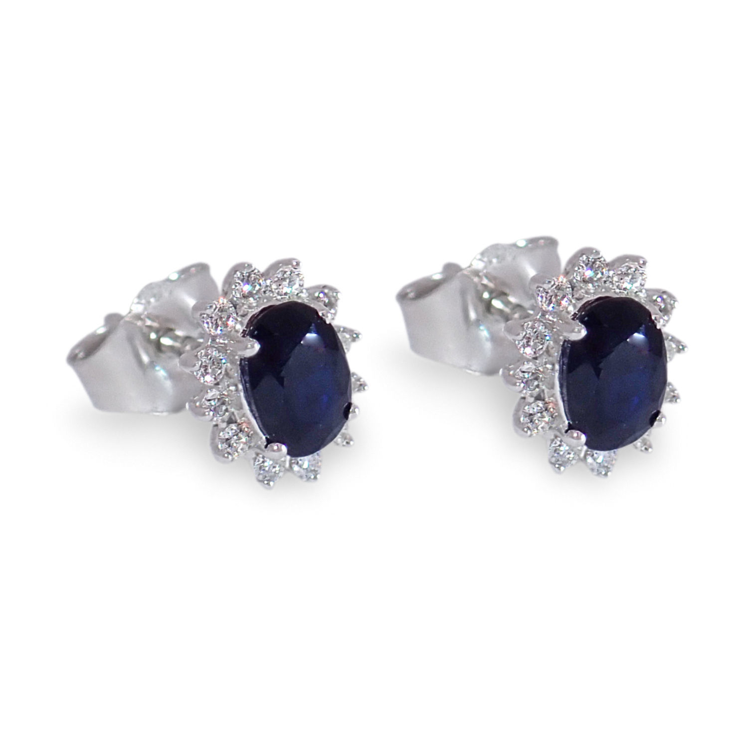 Ørepynt i hvitt gull med safir og diamanter 0,15 ct W-Si. Størrelse - 7 x 6 mm. Se video under beskrivelse.