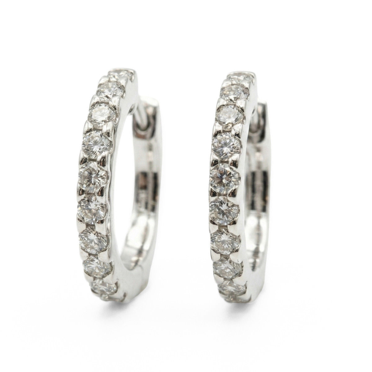 Diamantøredobber i hvitt gull 14kt/585 med diamanter tilsammen 0,75 ct W-Si. Et par vakre diamantøredobber, dekorert med mange fine diamanter, samlet 0,75 karat i W/SI-kvalitet. Disse slående diamantøredobbene glitrer vakkert og vil tilføre den siste touchen til ditt perfekte antrekk. Diamantøredobbene er ideelle for en rekke anledninger. De vil også være den perfekte gaven å gi til en spesielt kjær person. Gull øreringer er en tidløs favoritt som utstråler en blendende skjønnhet og eleganse. Laget av det edle gullet, kommer gull øreringer i en rekke stiler og design som appellerer til forskjellige smaker og anledninger.