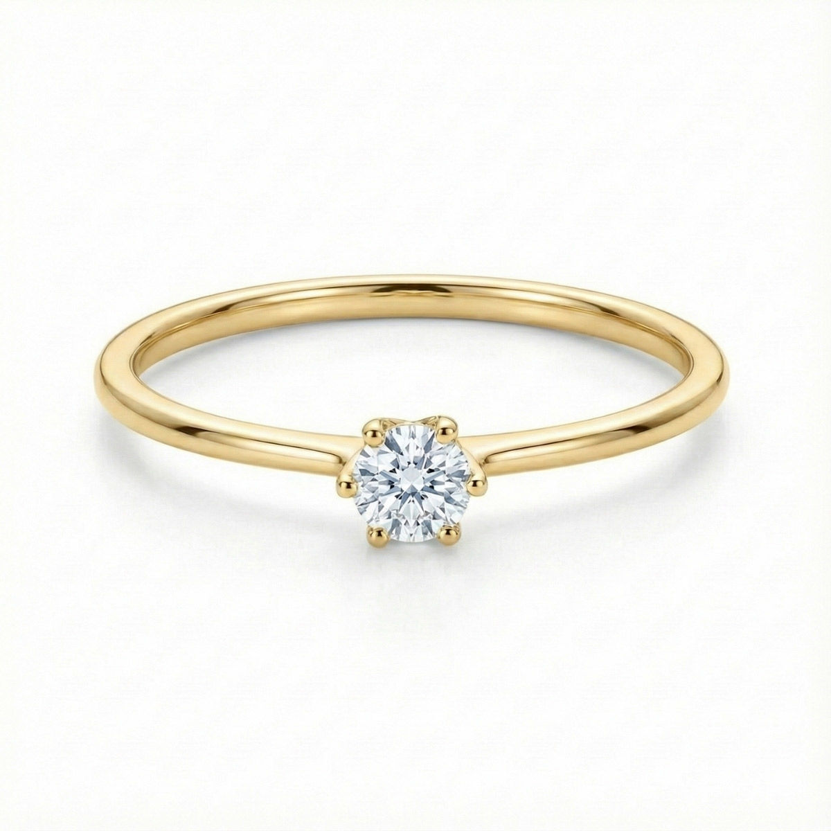 Diamantserie Magic Moments. Klassisk enstens diamantring med 6 klør. Ringen leveres i 14 karat hvitt, gult og rødt gull eller Platina 950.