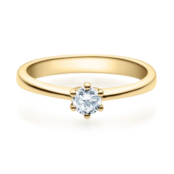 Naturlig glans av gull fremhever diamantens briljante glød og gir diamantringen et ekstraordinært preg av eksklusivitet. En perfekt balanse mellom enkelhet og luksus.