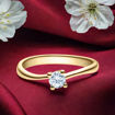 Denne utsøkte diamantringen i gull utstråler tidløs eleganse og raffinement. En glitrende diamant, nøye utvalgt for sin gnistrende skjønnhet, sitter i en klassisk fatning med fire delikate klør.
