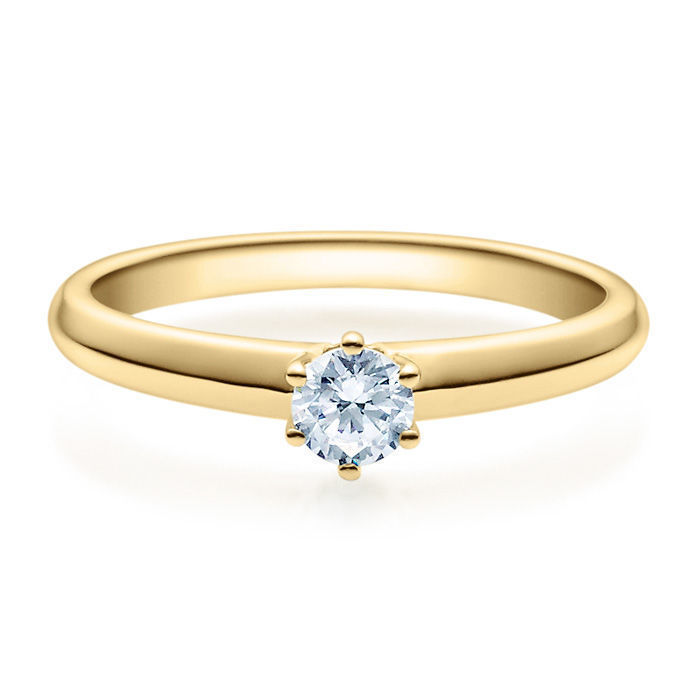 Naturlig glans av gull fremhever diamantens briljante glød og gir diamantringen et ekstraordinært preg av eksklusivitet. En perfekt balanse mellom enkelhet og luksus.