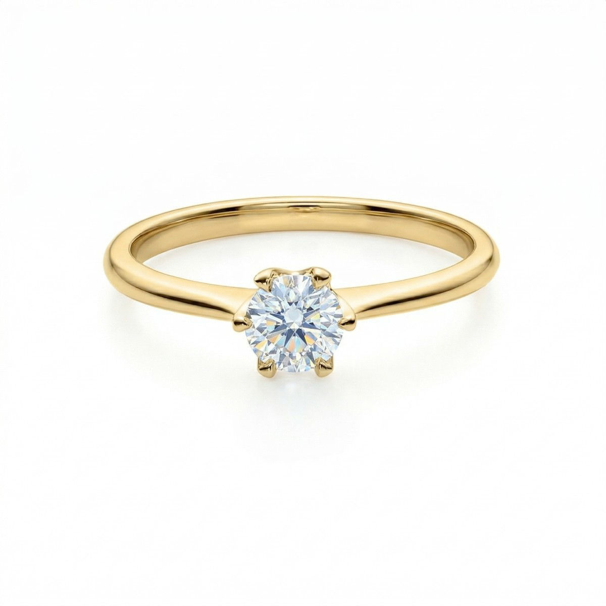 Elegant forlovelsesring i 14 kt gult gull fra Magic Moments-serien. Ringen har en klassisk enstensdesign med en glitrende 0,40 ct diamant holdt sikkert på plass av seks klør, som fremhever maksimal lysrefleksjon og tidløs eleganse. Den slanke, polerte skinnen gir et raffinert uttrykk – perfekt som forlovelsesring eller en eksklusiv gave til en spesiell anledning.