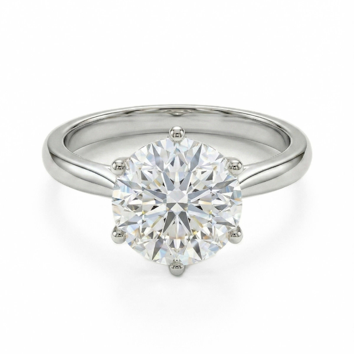 Denne utsøkte diamantringen i 14 karat hvitt gull med en imponerende 3 carat lab-dyrket diamant i River-farge (D/E) og E-VVS2-kvalitet er et strålende symbol på kjærlighet og ansvar. Den kombinerer tidløs eleganse med moderne bærekraft, og gir et blendende uttrykk som varer livet ut. Diamanten er sertifisert av IGI, som garanterer kvalitet og opprinnelse.