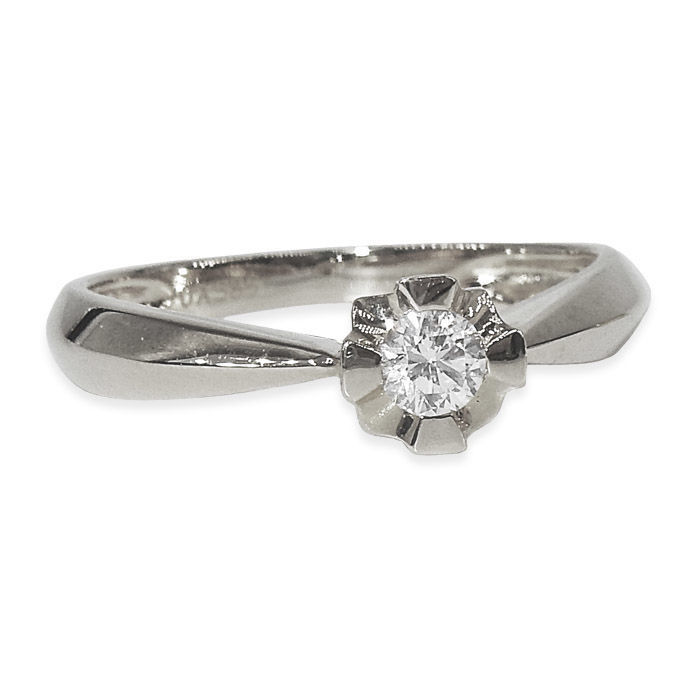 Diamantring Evita med 0,10 ct W-Si i hvitt gull 14kt/585. Se video lenger ned under beskrivelse. Klør rundt diamanten er robuste og ligger nøyaktig inn mot diamanten i en form som er optimal for å fremheve diamantene.