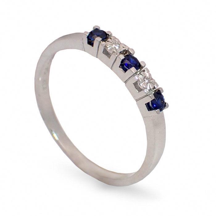 Ring i hvitt gull 14kt/585 med diamanter tilsammen 0,013 ct w-si & safir.