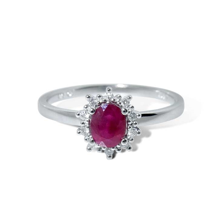 Diamantring i gull 0,05 ct W-p og rubin-bur615219