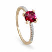 Diamantring i gult gull 14kt/585 med til sammen 0,15 carat diamanter W-Si og morganitt.