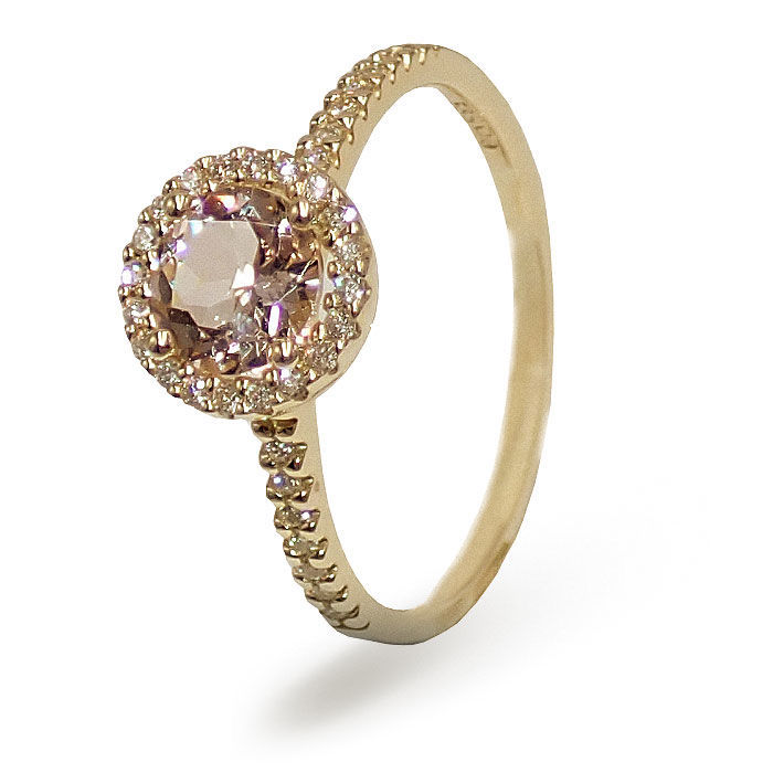 Diamantring i gult gull 14kt/585 med diamanter 0,04 ct W-Si og med citrin, peridot, sky blue topas, London blue topas, rosa rhodolitt, ametyst.