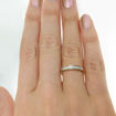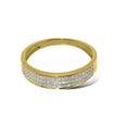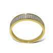 Diamantring i gult gull 14kt/585 med diamanter tilsammen 0.16 ct w-si. bredde 4 mm ( den delen av ringen med diamanter) og 1,9 mm på den andre siden. Se video lenger ned under beskrivelse.