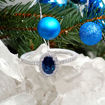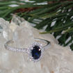 Diamantring i hvitt gull 14kt/585 med til sammen 0,14 carat diamanter W-Si og safir.