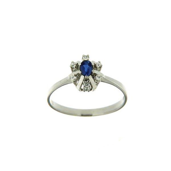 Diamantring i hvitt gull med 0,06 ct W-Si og safir -570286