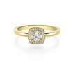 Senter diamant 0.30 ct. TW-Si med GIA sertifikat. Side diamanter 0.044 ct. alle i diamantkvaliteten TW-Si. En Halo diamantring har en hoved diamant omringet av en serie mindre diamanter eller andre edelstener i en "halo" eller ring rundt midtsteinen. Midt diamanten er ofte plassert i midten av ringen og er hovedfokuset. Den omkringliggende haloen av diamanter gir en fantastisk optisk illusjon av en større sentral diamant og øker dermed den visuelle appell og glansen til ringen.