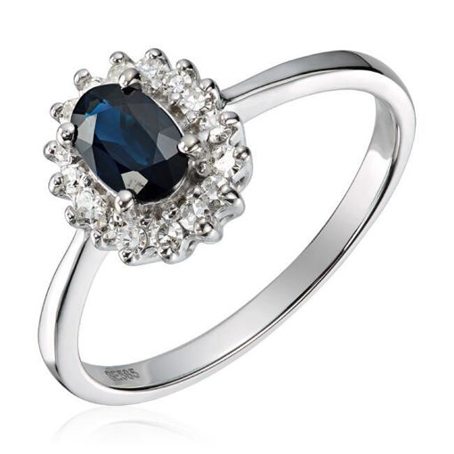 Diamantring Rosett i hvitt gull med safir og 0,16ct W-SI - 57286