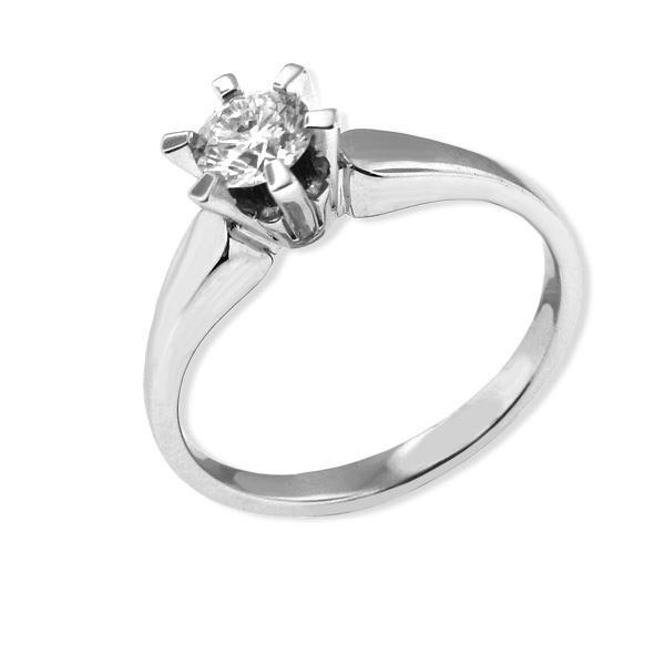 Vakker enstensring i 585 hvitt gull med 0,30ct TW/SI diamant fra vår serie Sofia. Det finnes både smykke og øredobber i samme serie. Denne ringen passer perfekt til å bruke som forlovelsesring eller frierring. Følger med GIA sertifikat. Denne høykvalitets produsenten i Hongkong har vært en partner av oss i over 20 år. Alle produktene holder høyeste kvalitet. Diamantene er håndplukket og alltid i W-Si1. Klør rundt diamanten er robuste og ligger nøyaktig inn mot diamanten i en form som er optimal for å fremheve diamanten.