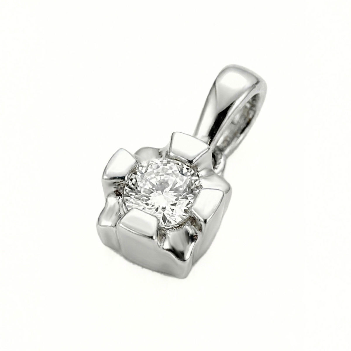 Diamant smykke i hvitt gull Evita med 0,15 ct W-SI. Moderne og robust diamantring til en god pris. Kjede er ikke inkludert i prisen, under menyen Sett & kjeder se utvalget av kjeder eller se nederst på denne siden. Vekt er 0,8 gr.