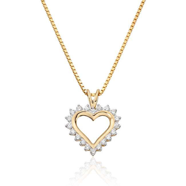 Anheng hjerte 0.26ct Wsi diamanter i gult gull. Kjede er ikke inkludert i prisen. *Metall: 585 Gult gull *Bredde: 13 MM *Høyde: 12,0 MM *Antall diamanter: 20 *Diamant vekt total: 0,26 *Diamant farge: HWE *Diamant klarhet: SI
