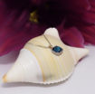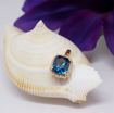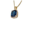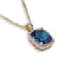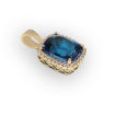 Smykke i gult gull 14kt/585 med blue topas 10x8mm og diamanter 0,10 ct WSI tilsammen, uten kjede. Se utvalget av kjeder nedenfor.