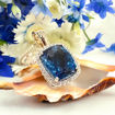 Diamantsmykke i gull blue topas 10x8mm og diamanter 0,10 ct WSI - 70957