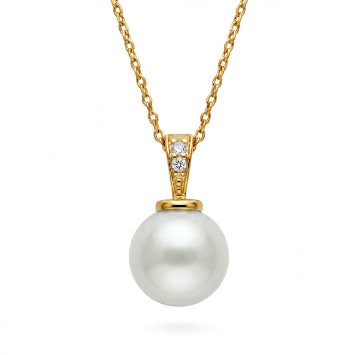 Dette eksklusive smykket kombinerer glansen fra en briljantslipt diamant på 0,03 ct W-Si med den naturlige skjønnheten til en hvit perle. Den delikate gullinnfatningen fremhever både diamantens briljans og perlens glød, og gir et sofistikert uttrykk som passer perfekt til både hverdagsbruk og festlige anledninger. Smykket er et tidløst valg som symboliserer renhet, luksus og kjærlighet – ideelt som gave til henne eller som et personlig smykke som varer livet ut.