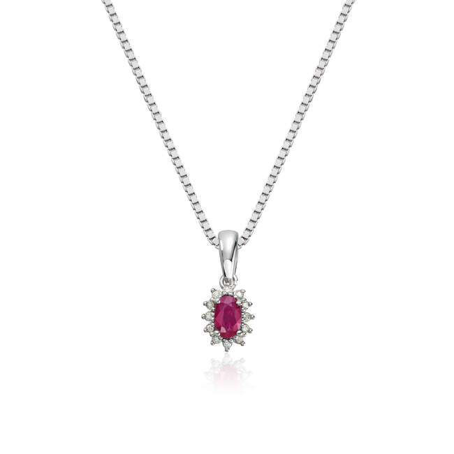 Anheng fra Espeland i hvitt gull 14 kt/585 med 12 diamanter tilsammen 0,034 ct W-Si og rubin. Espeland leverer både tradisjonelle klassikere og moderne smykker med en vri. Høyverdige gullsmykker til gode priser. Anheng leveres uten kjede.