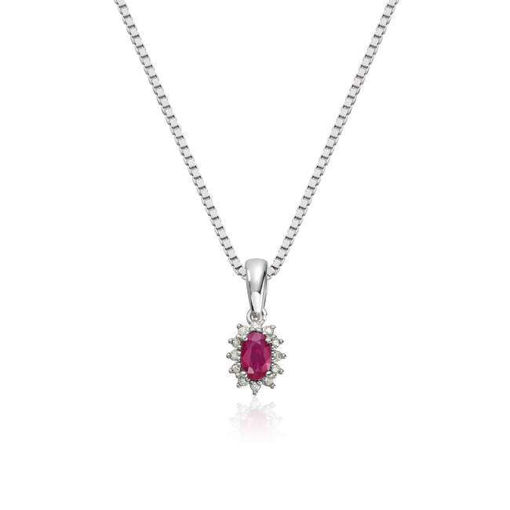 Diamantsmykke rosett i gull med 0,034 ct W-Si og rubin - 27228