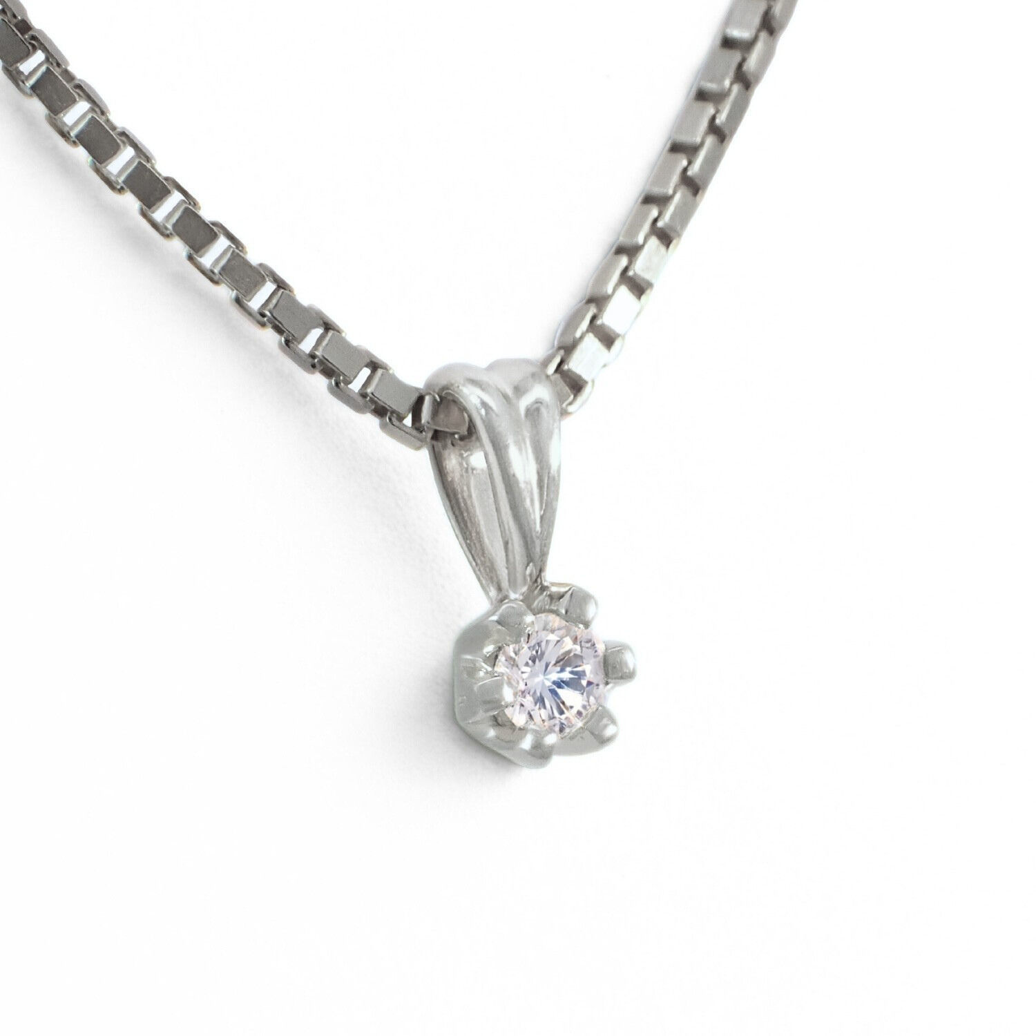 Diamantsmykke i 14kt/585 hvitt gull med 0.05 ct diamant, som utstråler tidløs skjønnhet til en svært attraktiv pris. Se video lenger ned under beskrivelse.