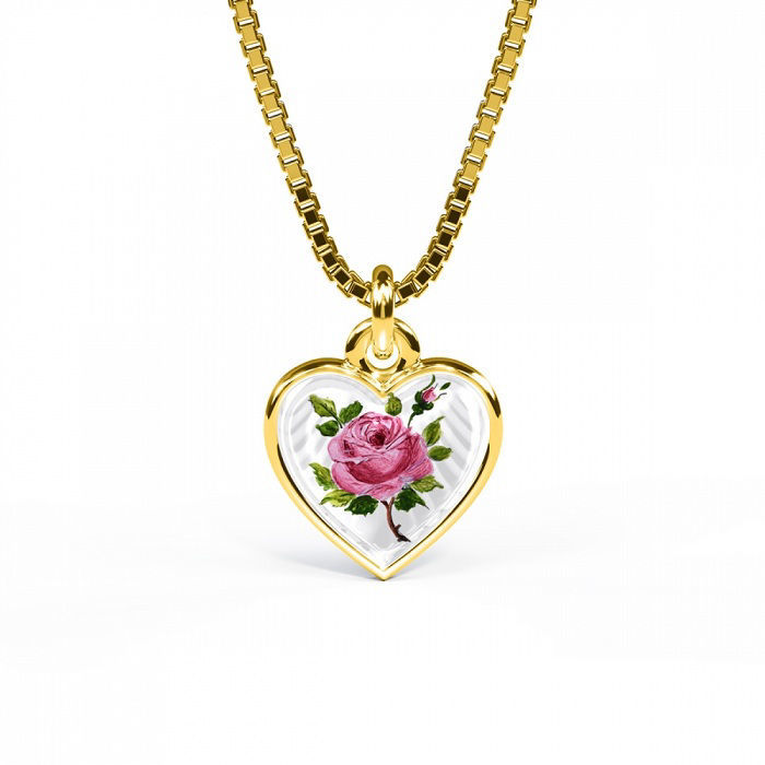 Emaljert hjerte i forgylt sølv, med Rose - 110710-1