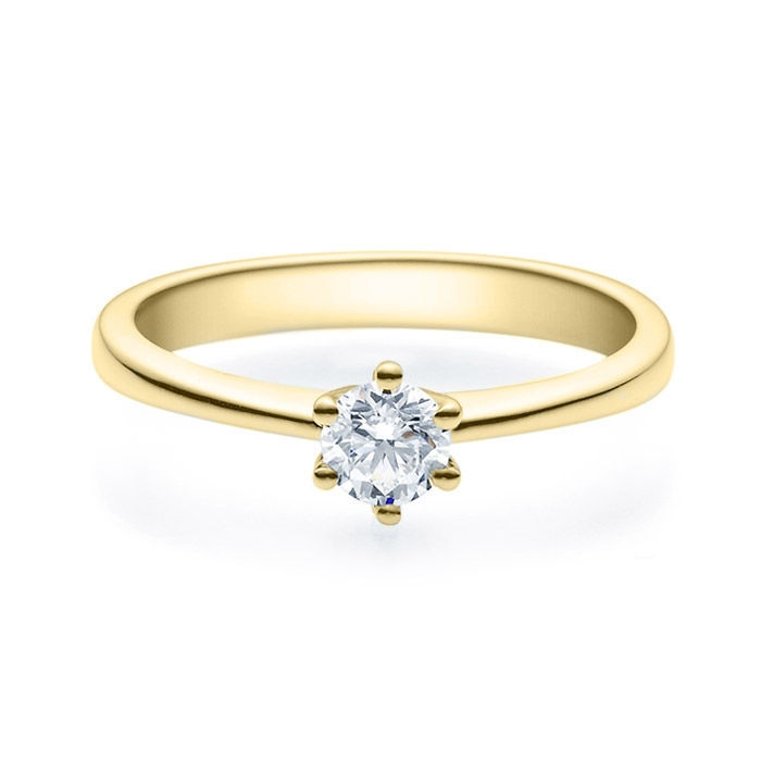 Naturlig glans av gull fremhever diamantens briljante glød og gir diamantringen et ekstraordinært preg av eksklusivitet. En perfekt balanse mellom enkelhet og luksus.