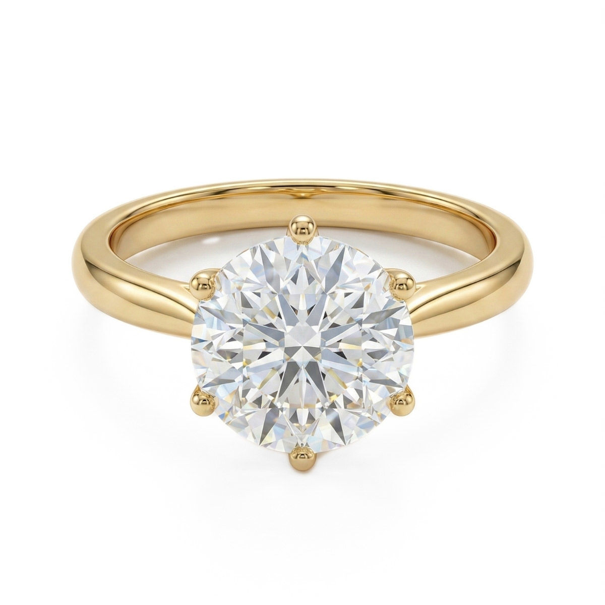 Denne utsøkte diamantringen i 14 karat gult gull med en imponerende 3 carat lab-dyrket diamant i River-farge (D/E) og E-VVS2-kvalitet er et strålende symbol på kjærlighet og ansvar. Den kombinerer tidløs eleganse med moderne bærekraft, og gir et blendende uttrykk som varer livet ut. Diamanten er sertifisert av IGI, som garanterer kvalitet og opprinnelse.